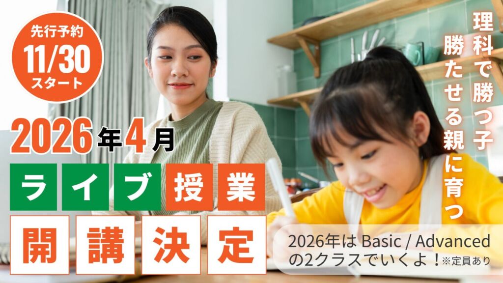 ライブ授業を通じて、理科で勝てる子・勝たせる親に育てていきます。